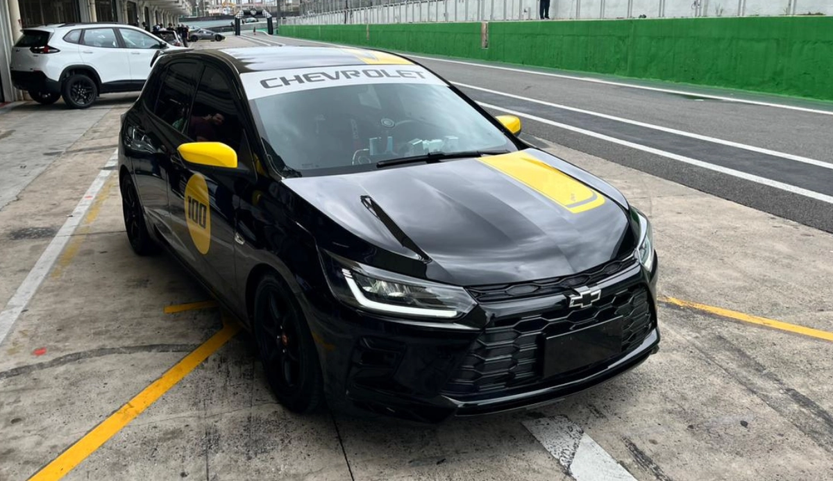 E, quando o assunto é corrida, não há palco melhor do que o Autódromo de Interlagos. Foi ali que a marca apresentou o hatch em sua forma mais ousada. A Mobiauto, inclusive, testou o modelo totalmente modificado no templo do automobilismo brasileiro, onde ele recebeu o nome de Onix Track Day. O projeto foi desenvolvido pelo time local de engenharia e motorsport da GM e se trata de um show car, ou seja, um modelo criado exclusivamente para uso em pista e que não veremos rodando por aí.