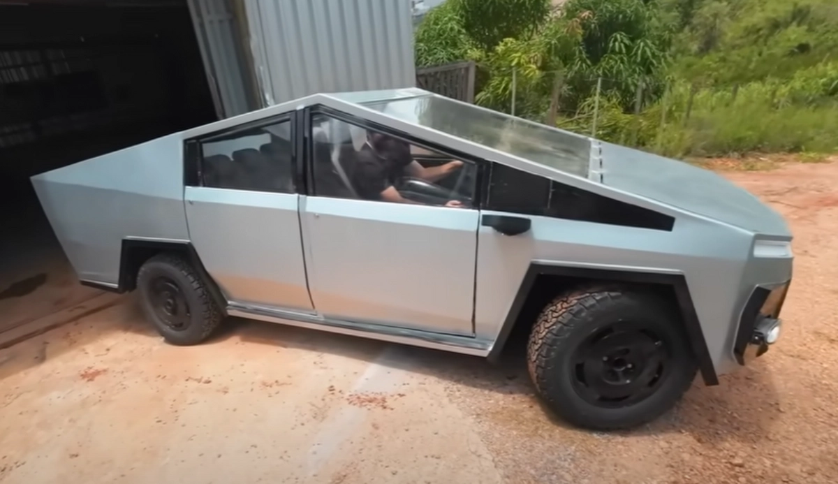 Para produzir a carroceria à lá Cybertruck foi necessário recorrer a um software de desenho, principalmente por conta das medidas, que só de comprimento ficou em 3,71 metros, menor do que os 5,68 m da picape Tesla original.