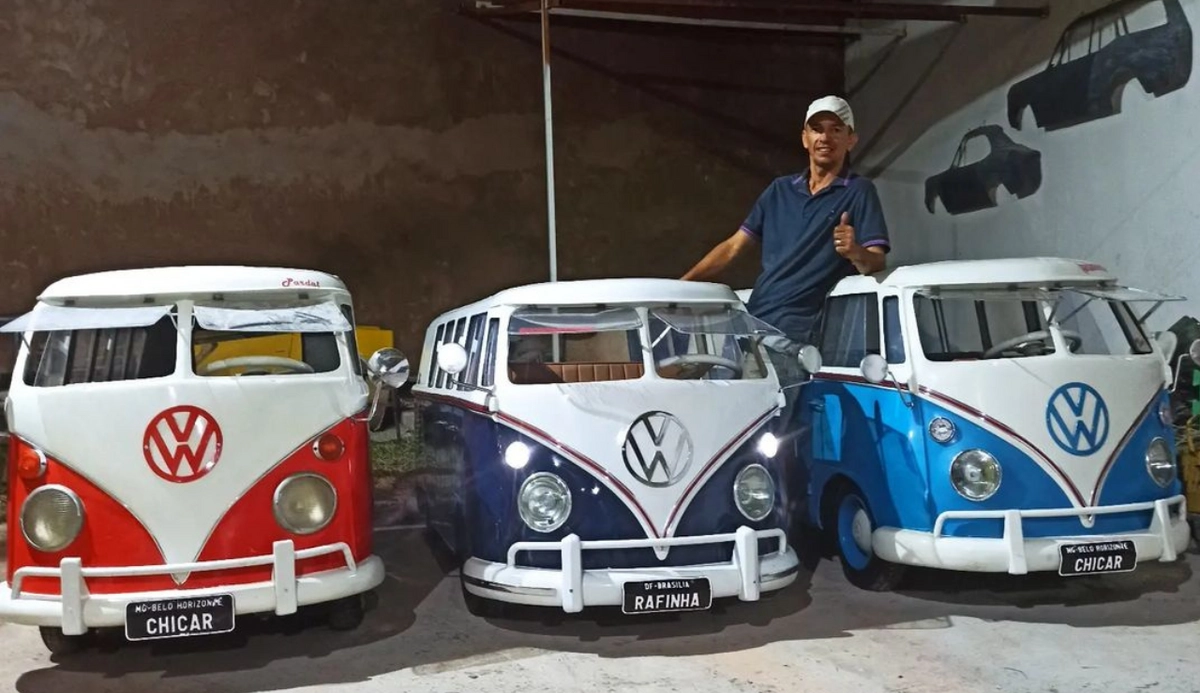 Este brasileiro fabrica mini Kombi e caminhões e ganha a vida com isso