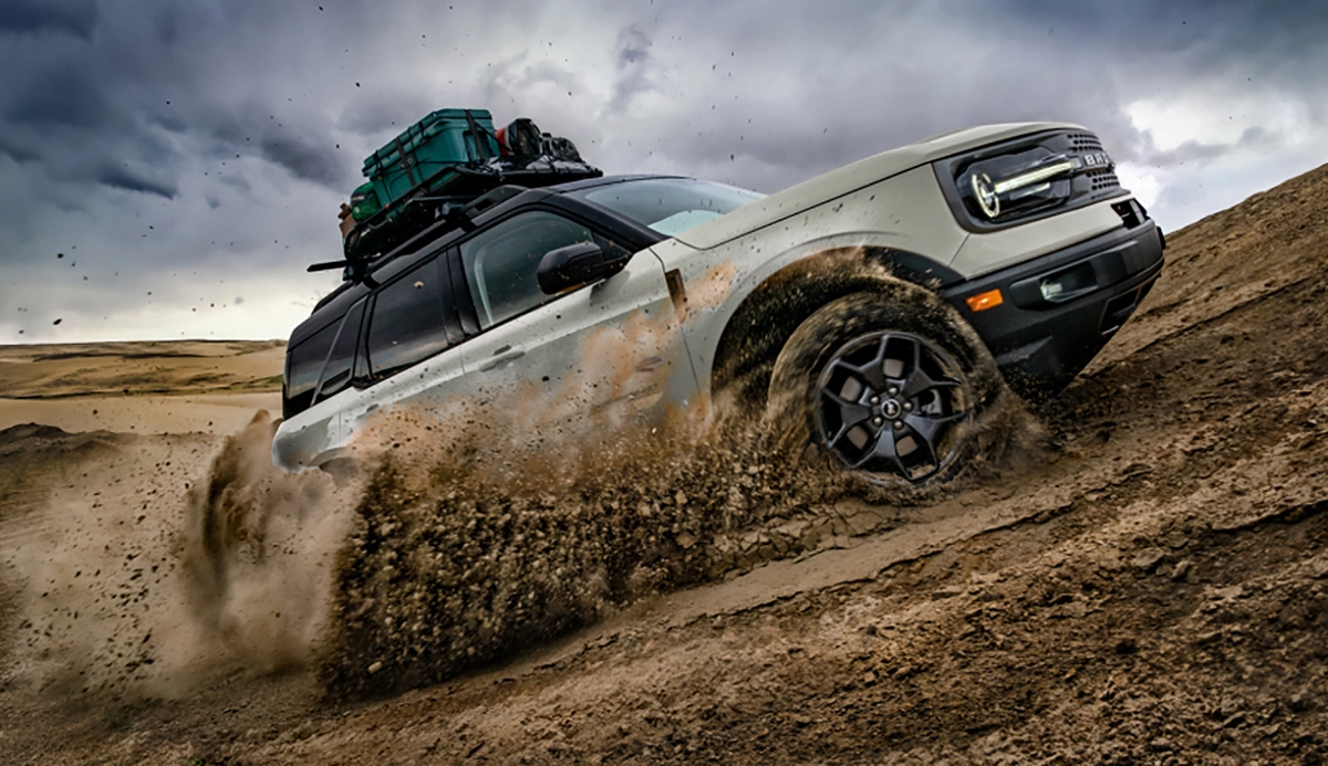 De série, o Bronco Sport terá carroceria com pintura bicolor, sete airbags, conjunto óptico dianteiro full-LED com farol alto automático, quadro de instrumentos com tela digital de 6,5 polegadas, som Bang&Olufsen com 10 alto-falantes, central multimídia de 8 polegadas, detector de fadiga, frenagem autônoma emergencial, assistente de permanência em faixa, câmera de ré com visão de 180 graus e leitor de placas de trânsito.