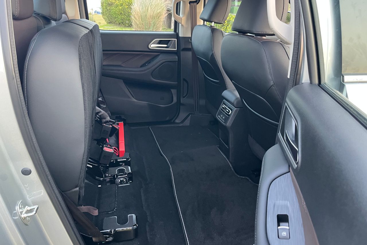 Como pede o roteiro, a Poer já tem tração 4x4, com 4x4 reduzida e possibilidade de bloqueio do diferencial traseiro. Curioso é que, assim como o modo de tração, os botões físicos da visão 360° da picape estão no console central, mas o destaque fica por conta de três comandos de tomadas 12V: uma no compartimento do motor, outra embaixo do banco do motorista e a terceira na traseira.
