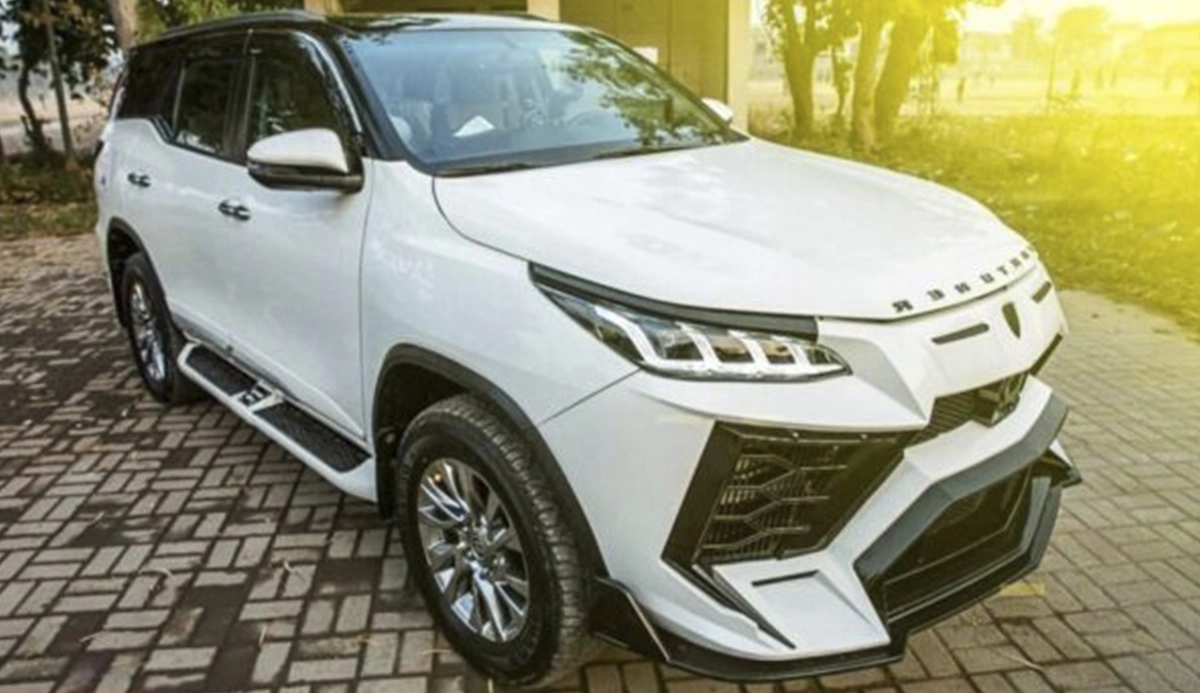 Por lá, o modelo chama Fortuner, mas é o mesmo produto que o nosso SUVzão de sete lugares. A modificação viralizou graças a postagem da loja especializada local Auto Daddy Customs, que promove três alterações: uma delas troca a frente antiga do SW4 (2016 – 2023) pelo visual da atual Diamond; outra deixa o modelo com frente de Lexus (e emblema Toyota); outra com design de Lamborghini Urus.