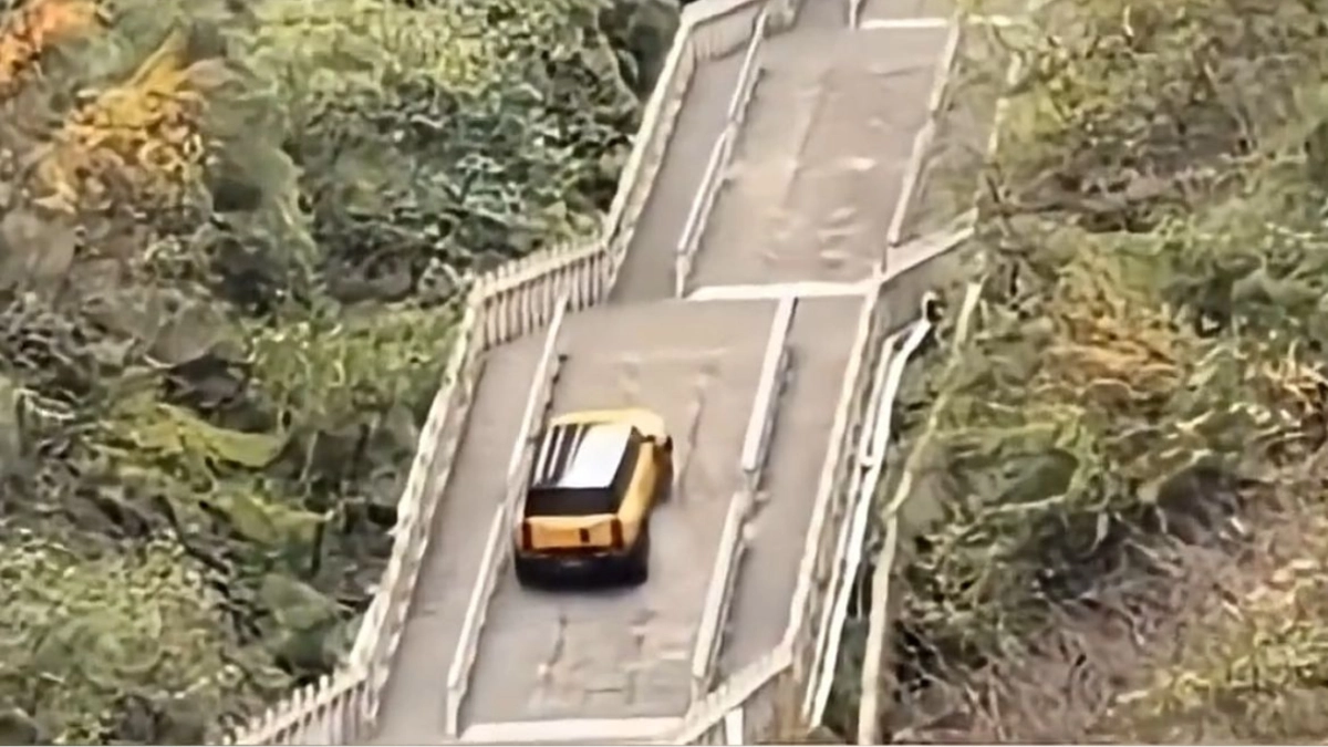 Teste de SUV híbrido chinês dá errado, danificando parte da estrutura de ponto turístico