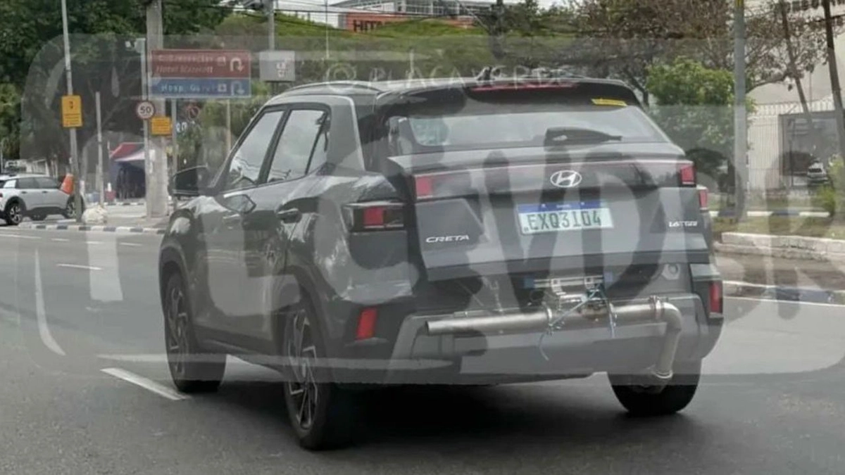 Uma unidade do Creta Ultimate, única versão que usa motor 1.6 turbo, foi flagrada e teve foto divulgada pelo perfil Placa Verde. Nas imagens, é possível ver todo o aparato na traseira que liga o sistema de escapamento à estrutura no porta-malas. Geralmente, esse tipo de teste é feito para avaliar o nível de emissões.