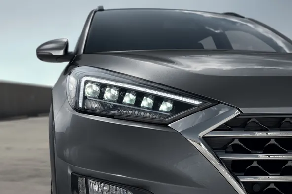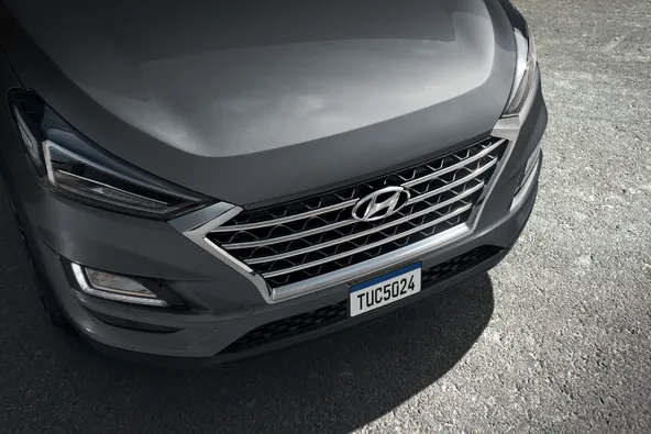 Mais uma vez o Tucson recebeu apenas pequenas mudanças visuais. A grade frontal cromada é uma delas e os faróis tiveram uma leve mudança no design, inclusive, a iluminação agora é de LED tanto na dianteira como na traseira. Quem olhar para os para-choques também verá que eles foram atualizados. Ainda no exterior do SUV, as rodas são de 18” polegadas com acabamento diamantado.