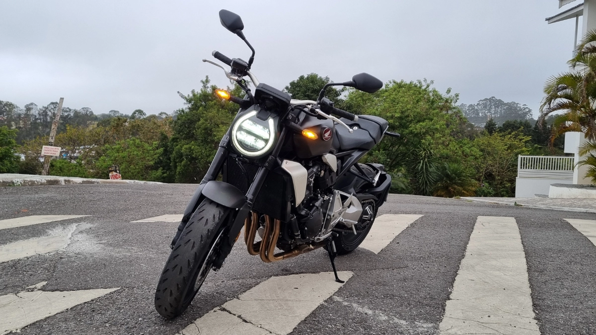 Apesar de ser uma 1000cc, a CB1000R é compacta, leve e muito bem balanceada, inspirando confiança nas curvas. A posição de pilotagem é um excelente compromisso entre esportividade e conforto, sendo menos radical que muitas concorrentes, permitindo viagens mais longas com menos fadiga.